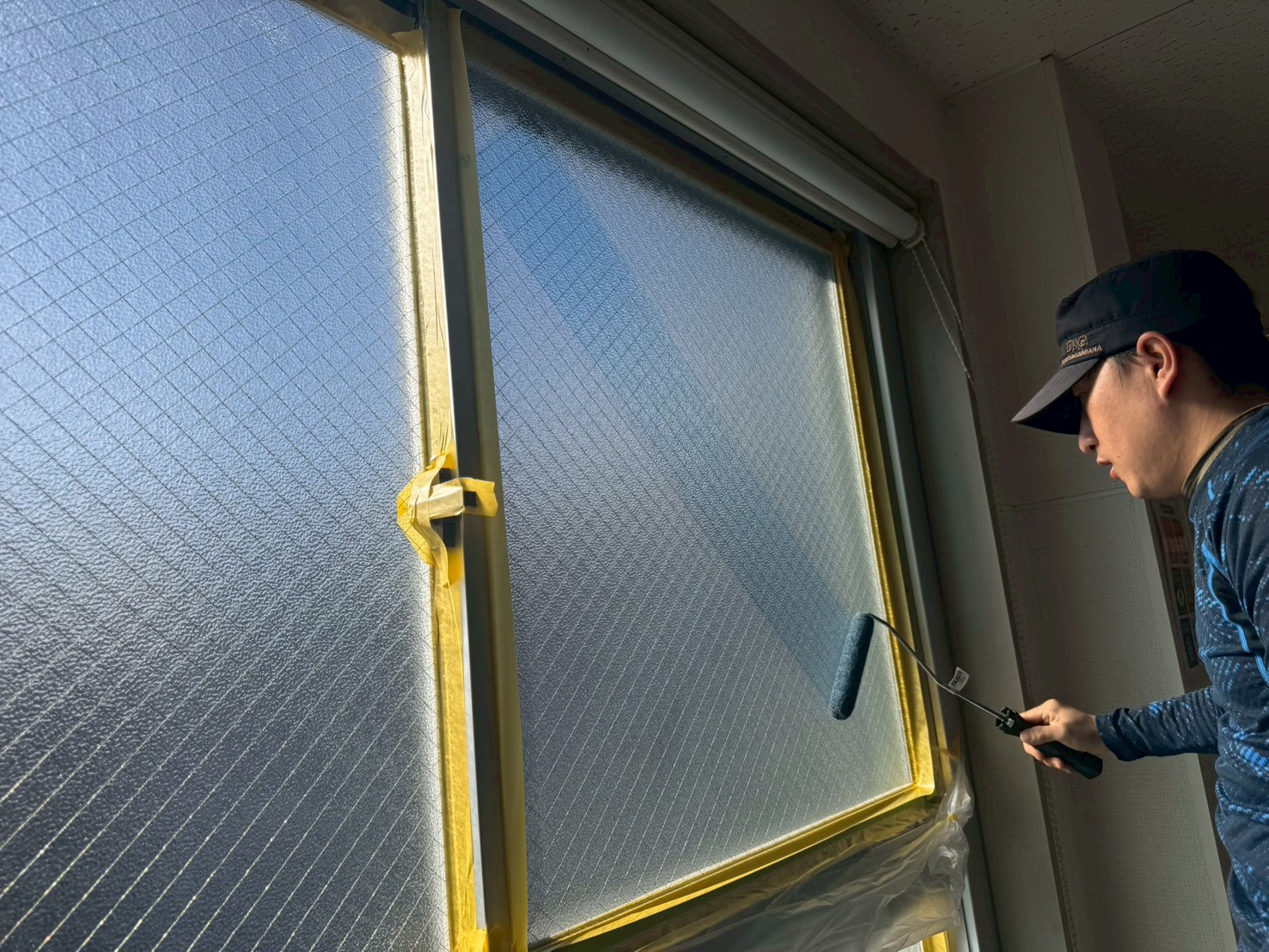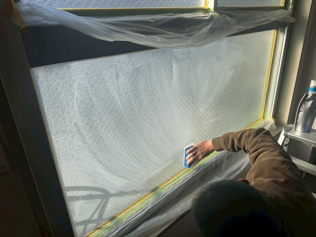 節電ガラスコートで省エネ対策。夏の窓の熱さ冬の寒さを防ぎます。 2026.02.12 未分類 目次遮熱ガラスコートとは節電ガラスコートの効果をデータ検証節電ガラスコート施工手順最後に 夏の窓は暑く、冬の窓は寒いと諦めてはいませんか。 何もしていない冬の窓は、58%が室内の熱が逃げて夏は78%外からの熱が入ってきます。 そのため冷房、暖房の効果が下がって電気代が上がる原因を作っています。 寒暖対策に内窓交換などはありますが、窓自体の交換はどうしても施工費用が高くなってしまいます。 窓の開閉も内窓外窓の2回開閉の手間が増えてしまうと言う声も少なくありません。 そこで窓交換より安く導入が出来、窓ガラスの遮熱、断熱、UVカットコーティングが可能になる 節電ガラスコートをご紹介します。 遮熱ガラスコートとは 内窓ガラスに専用ローラーで塗布できる赤外線と紫外線カットの省エネナノコート剤になります。 内窓ガラスに施工する事で、夏は直射熱が入る事を防ぎ、冬は室内の暖房熱が窓から 熱逃げを防ぐためにエアコン代を20-30%程度削減ができ、紫外線と赤外線をWカット出来ます。 夏は直射熱を5-15度近く遮熱するため、室内全体で2-3度C気温が下がります。 お客様にとっての最大のメリットは、3つあり効果を発揮します。 ①夏の西日対策、窓から入る直射熱対策 ②冬の窓から入る熱逃げの解消と結露対策 ③紫外線による色褪せ 節電ガラスコートの効果をデータ検証 温度を測る事の出来るサーモグラフィで冬の窓を施工前と施工後を比較しています。 施工前の窓は青くなっており、表面温度が低く冷たくなっている状態になります。暖房の熱をとどめることが出来ず 暖房の熱を室内にとどめることが出来ず、室内の熱が外に逃げている状態になります。 施工後は緑から黄色くなっており、熱が窓から逃げずに暖かいままの状態を維持していることが分かります。 施工前 施工後 施工前 施工後 専用の計測値で施工前施工後を比較しています。施工前と施工後のデータを比較すると以下の通りとなります。 VLT:可視光透過率 レンズを通り抜ける光の割合になります。数値が高いほど光を通しやすくなります。 IRR:近赤外線カット率 人が熱を一番感じる太陽光の波長域900nmから1100nmの範囲のカット率 UVR:UVカット率 紫外線による洋服などの色あせなどの原因となるUVのカット率 ・VLT:95%→57% ・IRR:7.6%→85% ・UVR:5.5%→96% VLTは、38%下がっており、光を通しにくくなりました。 IRRは、77.4% UVRは90.5%カットとそれぞれ熱さの原因である赤外線と色褪せ等の原因のUVの大幅なカットに成功しています。 節電ガラスコート施工手順 ①窓枠の養生 ガラス以外の場所に油膜取り剤が付かないように広めに窓枠の養生をします。 ②油膜取り ガラス全体に油膜取り剤を付けて油膜を除去します。 ③養生 コーティング時にサッシ枠が汚れないようにするため養生します。 ④プライマー(下塗り剤)を流布する トップコートがガラス全体にしっかり塗布するようにします。 ⑤専用液剤のトップコートをガラス全体に塗布 最後に 塗布をする事で透明性は塗布する前と比べると10-15%近く下がりますが、見た目はほとんど変わりません。 耐久性は15年ほどでUVカット率が少しずつ劣化しますが、他社のガラスコート製品よりはるかに長い耐久性を誇ります。 夏の窓は暑く、冬の窓は寒いと悩んでいるが、内窓交換に充てる費用が無く我慢してしまっている 一度窓のどれぐらいの効果が出るか一部屋だけでも効果を試してみませんか。 Post Share Hatena LINE RSS feedly note 投稿者: yoshimura 未分類 コメント: 0 某運送会社のペンキ塗り替え工事に伴うパネル脱着工事を行いました。前の記事